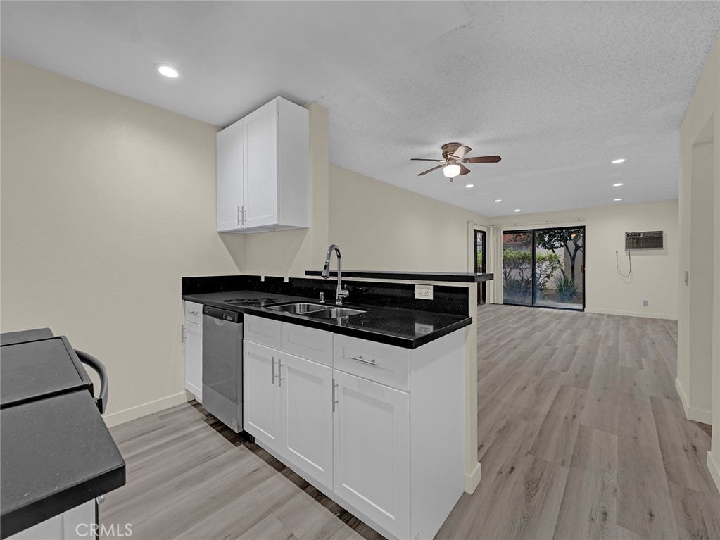 This remodeled Wonderful Winnetka Condo unit has an open floor plan with 2 family bedrooms & 1.75 remodeled baths. The unit is 990 square feet with 160 total units in the complex. The spacious living room has recessed lighting, ceiling fans and is conveniently adjacent to the dining room & remodeled kitchen. The dining room has a ceiling fan is located convenient the remodeled kitchen. The family chef will love the newly remodeled kitchen with ample cabinets, quartz counters & backsplash, a new range & range vent hood, new dishwasher, dual basin stainless steel sink & recessed lighting. The living room has new laminate flooring & recessed lighting. The units many amenities include a newly remodeled kitchen, new appliances, new laminate flooring throughout, recessed lighting, ceiling fans & remodeled bathrooms. You’ll enjoy entertaining family & friends in the complex’s common area with fenced pool, spa, recreation room with fireplace, pool table & kitchen & gym room. There are 2 assigned parking spaces #123 & 124. Close to schools, dining and shopping, CSUN & Pierce College, World Class dining & entertainment at The Village at Warner Center and Northridge Mall & easy freeway access.