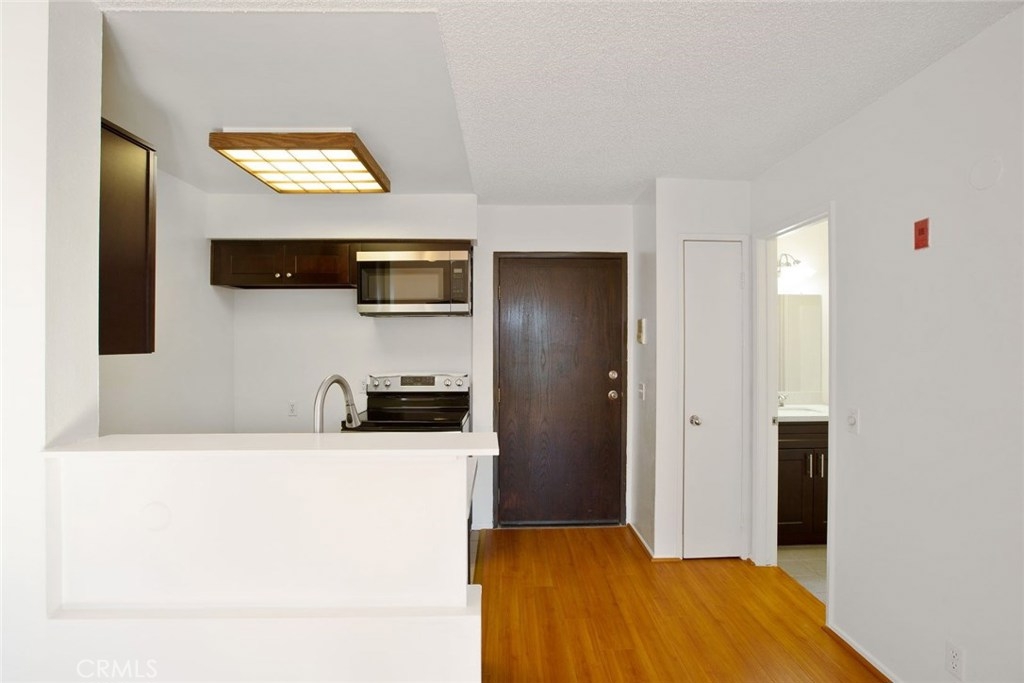 This studio is bright and spacious. The living/bedroom area acts as two separate rooms with a built-in partition. The bedroom flows easily into double-sided closets and a conveniently located bathroom. A cozy kitchen, with room for bar stools and plenty of counter space. Amenities include a pool, spa, gym, common laundry facilities on every floor, elevators, a community room and controlled security access and cameras. Conveniently located close to Cal State Northridge, Pierce College, the Northridge Fashion Center Shopping area and the 101 & 118 freeways.