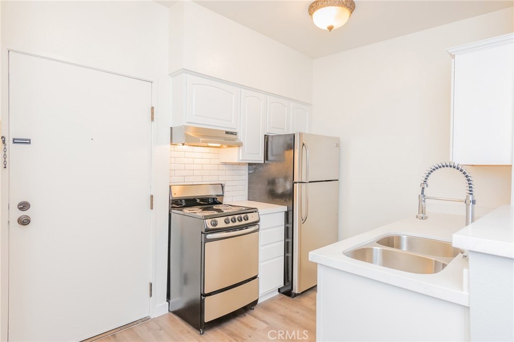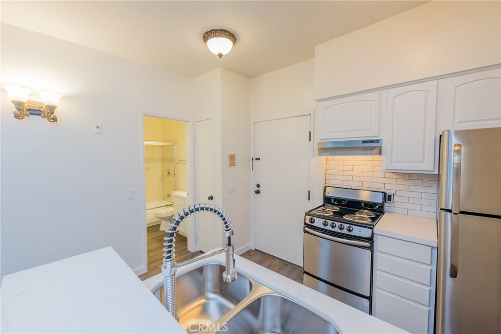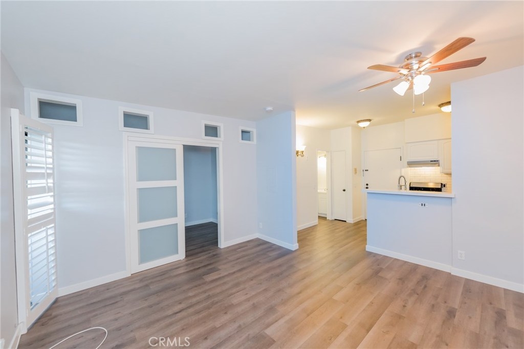 Great Condo in the West Valley!! Upper end unit with only one shared wall. Kitchen is equipped with Quartz counters in the kitchen, stainless steel appliances that includes electric stove, hood and refrigerator. Other features include laminate flooring, ceiling fan and fresh paint. Previous owners installed a dividing wall with sliding doors to create cozy bedroom. 1 Car covered parking space in gated parking lot.