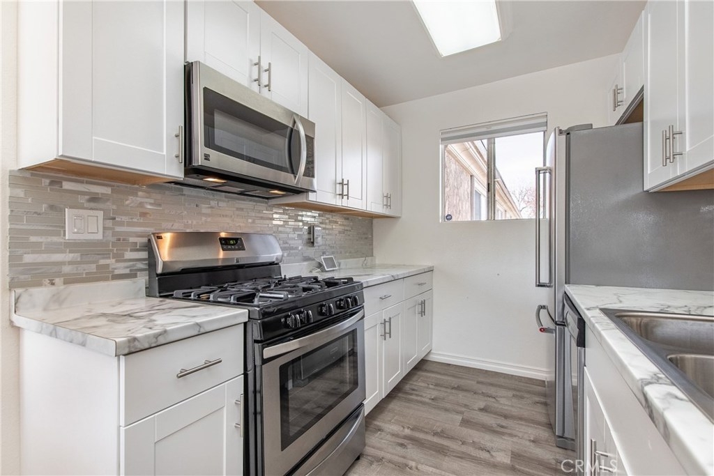 Absolute Charmer. This 2 BR 1 Bath is perfect opportunity for a first time home buyer.The property has been fully remodeled and it features a designer kitchen with stainless steel appliances.The property has washer and dryer inside the unit. Gated community offers two pools, gym, playground and HOA includes water and trash.