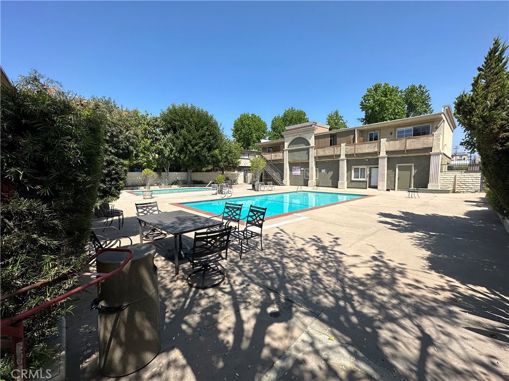 Beautiful condo located on a serene, tree-lined, cul-de-sac in the community of Forest Glen Villas. This spacious 2-bedroom, 1 bath End unit provides bright living and dining space with lots of windows offering views of trees and mountains which will make you feel right at home. Recessed lights, The lovely kitchen comes with refrigerator, range, microwave and dishwasher. Central heating and air provided. Complex features an open courtyard design, gated entry with video cameras, assigned covered parking and storage space through secure gates, gym, community laundry room, 2 swimming pools, 1 kid pool, a heated spa, large clubhouse for private parties, and playground. Conveniently located near Pierce College, Metrolink, grocery stores, schools, shopping, and restaurants. Runnymede Park just across the street for fun afternoons on the swings or a quick game of tennis.Motivated seller!