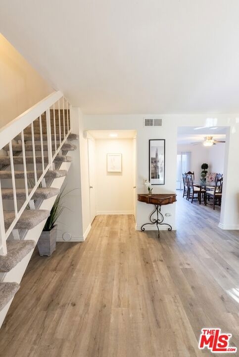 Homes in this desirable Winnetka townhome community rarely come to market. This inviting 3-bedroom, 2.5-bath townhome offers approximately 1,360 sq ft of thoughtfully designed living space and a wonderful blend of comfort and convenience. The spacious main level features attractive woodgrain luxury vinyl flooring, a generously sized living room, and a large dining area with direct access to a private patio, creating an easy indoor-outdoor flow ideal for both everyday living and entertaining. The upgraded kitchen boasts quartz countertops, recessed lighting, stainless steel appliances, a highly functional layout, and a large closet pantry for abundant storage. Just off the living room is a convenient powder bath and coat closet. Upstairs, the expansive primary suite offers peaceful views of the tree-lined walkway, two separate closets including a walk-in, and an upgraded ensuite bath. Two additional bedrooms overlook the private rear patio, while ample hallway storage adds to the home's practicality. The private patio provides direct access to the attached two-car garage, where the washer and dryer are conveniently located. Additional features include central HVAC with a Nest thermostat, guest parking, and beautifully maintained grounds with charming meandering pathways shaded by mature trees leading to the community pool area. Ideally situated adjacent to Runnymede Park and convenient to local freeways, this home offers a rare opportunity to enjoy peaceful community living with easy access to everything the area has to offer.