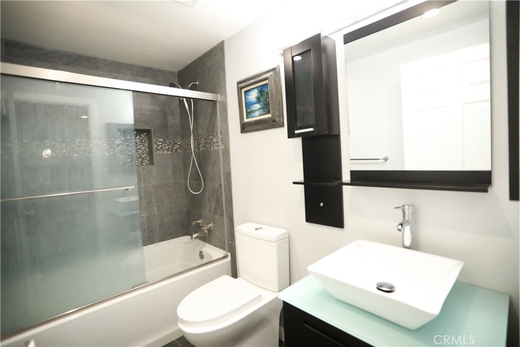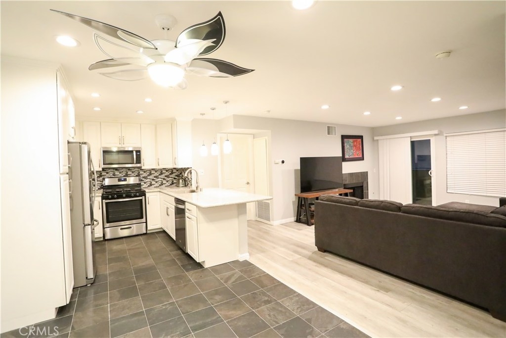Stunning completely remodeled 2 bedroom 2 bath condo! No detailed sparred throughout the home! Gorgeous open concept kitchen, dining room, and living room with top of the line wood plank vinyl and tile throughout! Cook and entertain in the chef's kitchen with new Whirlpool stainless steel appliances, custom cabinetry, tile and countertops. Relax and unwind in the spacious living room by the fireplace. 2 master bedrooms each with their own bathrooms! Recessed lighting, custom window treatments and paint throughout. Custom tiled bathrooms with new vanities and fixtures. Top of the line Nest thermostat and Large Laundry room located in the unit! Private patio with custom shades for privacy, plenty of storage space and 2 parking spaces In a gated community garage. Pool and jacuzzi with beautiful landscaped grounds! Hurry, this one won't last!