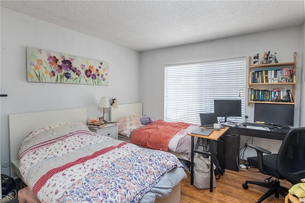 Don't miss this Spacious Two Bedroom, Two Bath Second Floor Condo at the Back of the Property Overlooking the Pool and Spa. Great Location! Open Floor Plan Features Livingroom with a Cozy Fireplace and a Balcony. Kitchen features a gas stove, microwave, dishwasher, and pantry. Primary Bedroom with Bath has a walk-in closet. Secondary bedroom is very spacious as well. In unit Laundry Room with full sized side by side Washer and Dryer. Gated security complex features a Large Pool and Spa, plus 2 Elevators. The unit comes with Two Covered Subterranean Garage Parking Spaces. Close to shopping and transportation. Hurry, this unit will sell quickly.