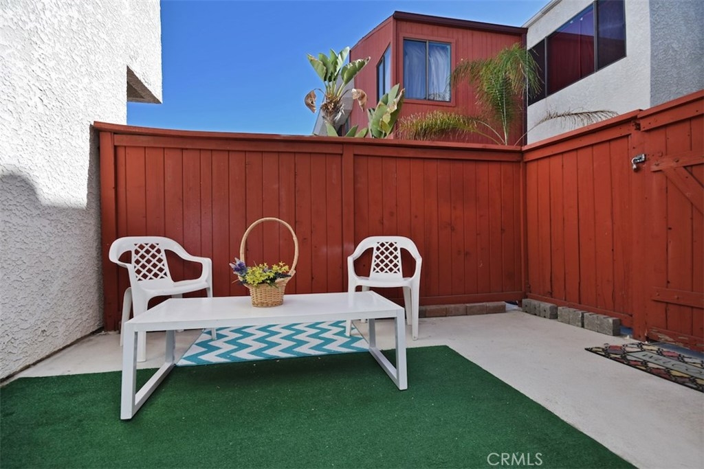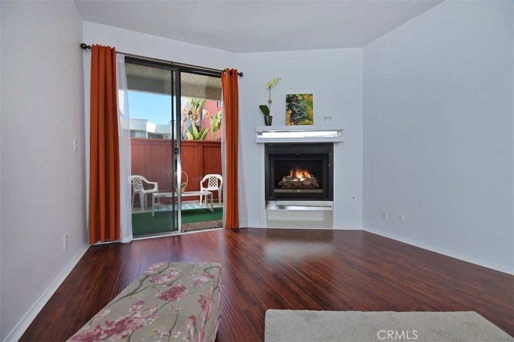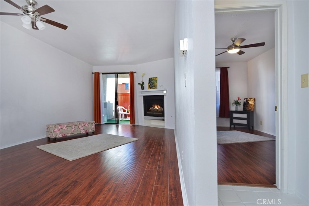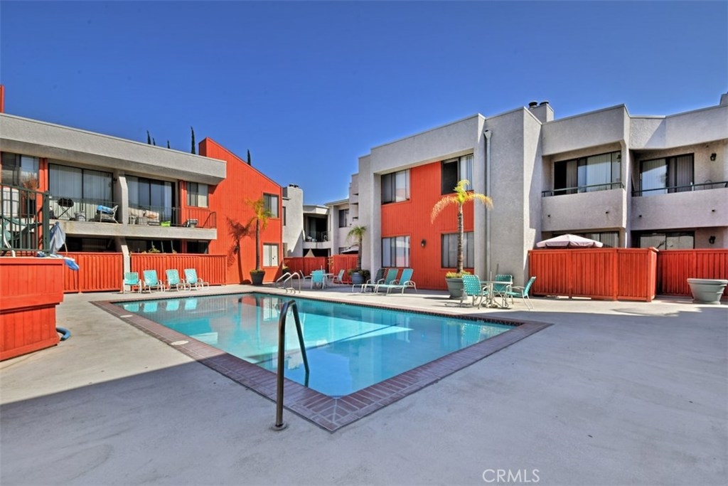WHY RENT!!! Light and Bright wonderful unit in Gated Secured Condo complex. One of the best locations within the complex with huge patio. First floor unit with beautiful newer flooring, living room with cozy fireplace open to the kitchen with high ceilings. Sliding glass doors lead you to a very private entertainers patio with privacy, yet close to the big open pool area with spa and lounge furniture to enjoy the hot summer days in a resort like style. Central air and Heat, newer light fixture, newer window treatments. Large bedroom with walk-in closet, bathroom with tub and shower and newer light fixture. The complex has a pool, spa, laundry room, large recreational room for meetings and celebrations. The unit has 2 parking spots and additional storage area. This is a unique opportunity.