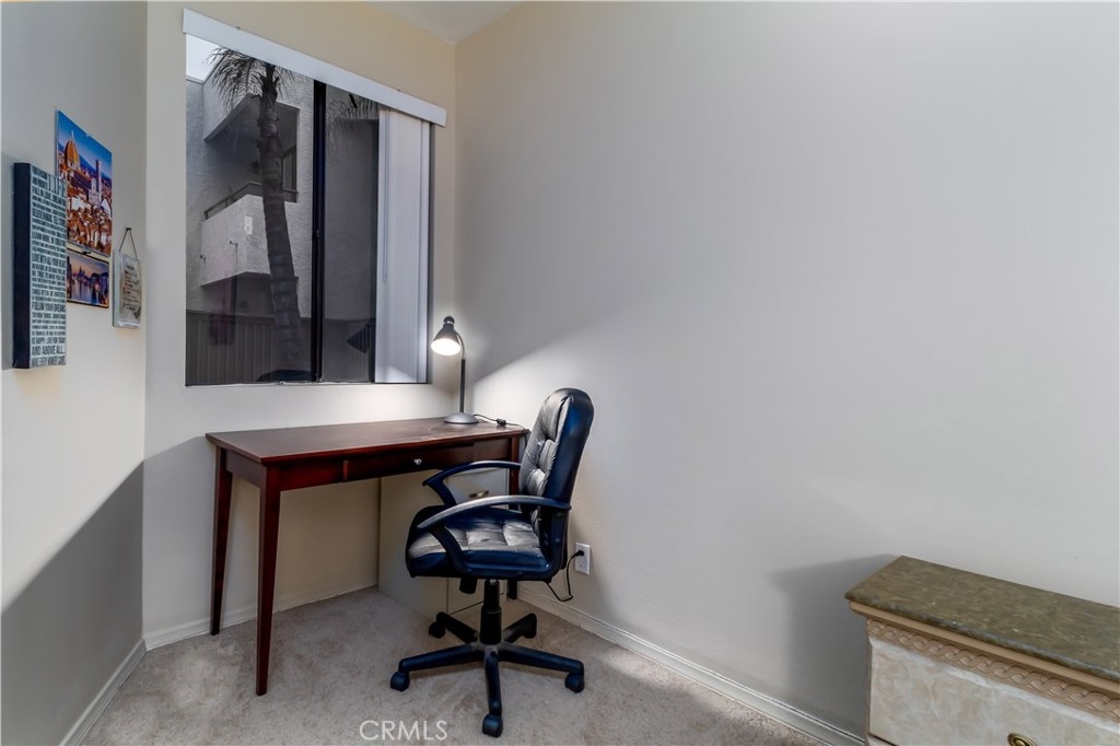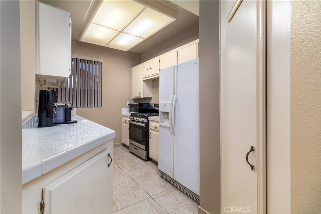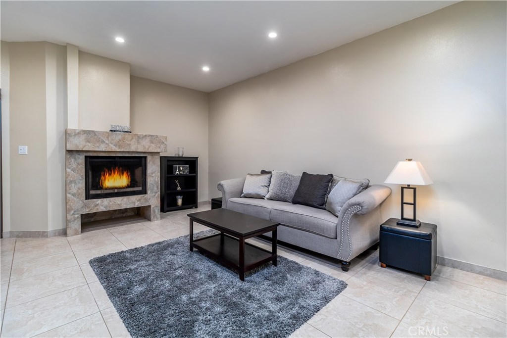 Bright and airy 2 bed, 2 bath, 1,033 sqft condo in a desirable community with numerous amenities. The unit has been freshly painted with decorator colors and includes open plan living space, high ceilings, recessed lighting, and updated ceramic tile floor and fireplace surround. Spacious living room features oversized fireplace and flows into the dining area which opens onto a large private patio, ideal for outdoor dining/entertaining or an area for your pet. Direct access to community pool and spa. Bright Kitchen offers ample counter space and a convenient passthrough to the dining area. Spacious master bedroom includes a walk-in closet and an en-suite bath. Roomy second bedroom accesses the hall bath. The unit has indoor laundry. There is also separate storage space and 2 tandem parking spaces in a secure garage. HOA dues include hot and cold water, cable TV, internet, earthquake insurance, and access to pool, fitness room, and recreation/meeting room. Conveniently located near schools, restaurants, shopping, and freeways.