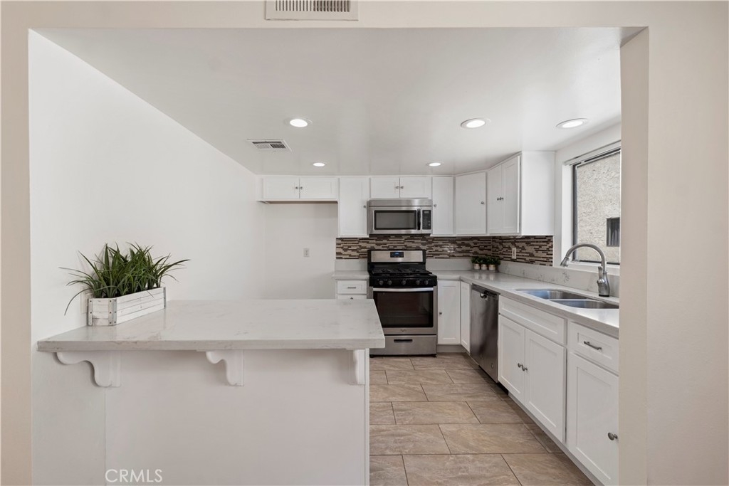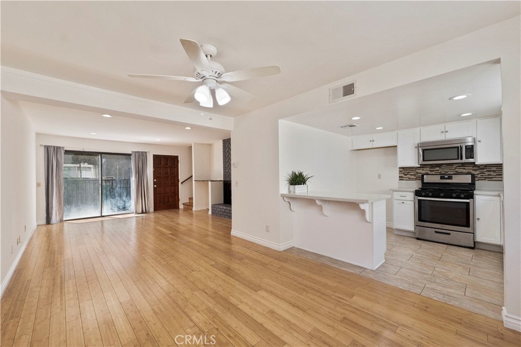 Welcome to your move in ready two-bedroom townhome. This light and bright living space spans 1,127 SF, making room for everyday comfort. The kitchen, comes updated and ready to inspire your inner chef. Finished with quartz counters and stainless-steel appliances. The 2.5 bathrooms feature updated vanities, providing a seamless blend of style and convenience. The bamboo wood floors across the property lend a warm and inviting ambiance. Newly installed recessed lighting perfectly complements the fresh paint, enhancing the overall charm of the townhome. The building has a new roof, which ensures you're sheltered from the elements. Additional features include the convenience of in-unit laundry, and the bonus space off the garage entry offers a blank canvas for you to customize. For those who value security, the building is gated, giving you peace of mind. Not to be overlooked, this home comes with a spacious 2-car attached garage, providing ample room for your vehicles or extra storage. HOA is $325/mo. and includes: water, trash and walls out insurance.