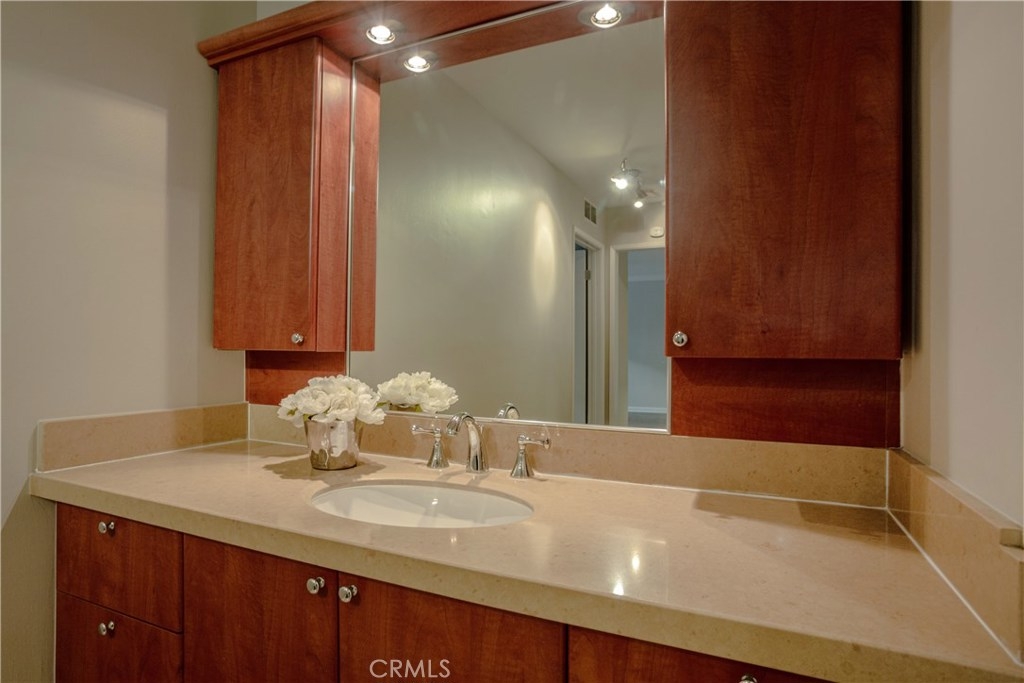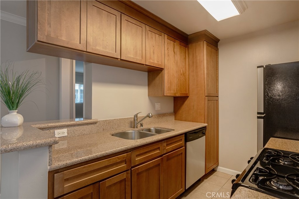 Updated and spacious end-unit condo in the heart of the West San Fernando Valley with LOW HOA dues, covered parking, and convenient access to shopping, transportation, and entertainment. This gated and secure building underwent a complete remodel in 2007. Pull into the gated parking area to your covered space; once you enter the building this unit is just steps away so you don't have to carry your groceries up and down stairs. Your private entrance opens up to a spacious living room with fresh paint and a view of the pool. There is a large dining area just off the kitchen which has granite counter tops and stainless steel appliances. The spacious bedroom has ample closet space and a sleek ceiling fan for cooling off on those hot summer days. The updated bathroom has tons of cabinet space and a full shower and tub. The complex offers BBQ areas, a pool AND jacuzzi, and plenty of laundry machines that are also conveniently located near the unit, but not so close that you would hear any noise or have a lot of foot traffic. Call today to set up a showing and lets get you packing!