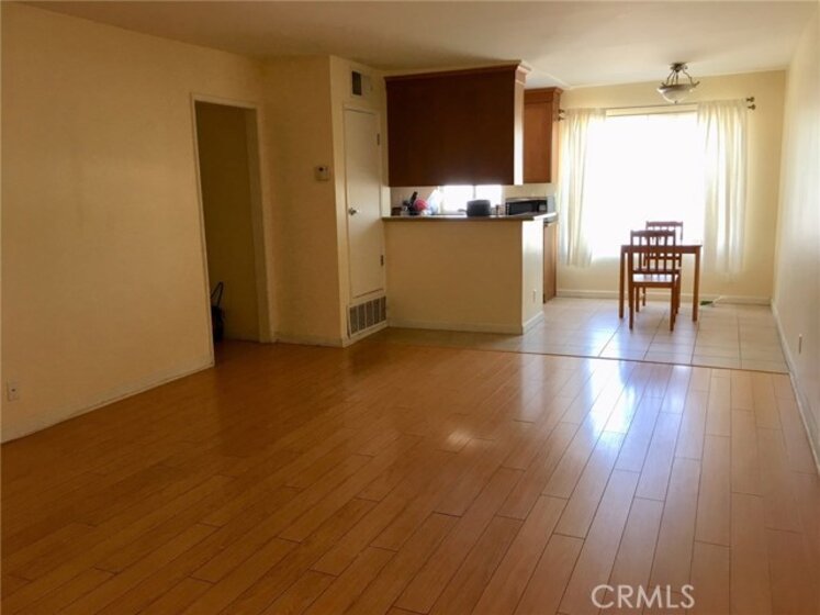Beautiful condo entrance. Bright corner unit with 2 bedrooms. Freshly painted walls. Clean laminate floor in living room. Good cross-ventilation. This unit is located on second floor with no unit below. Sparkling swimming pool, spa, BBQ in courtyard for families to enjoy. Two tandem, covered parking spaces. Pets under 25 lbs allowed. Building has EQ insurance. Sold "as is".