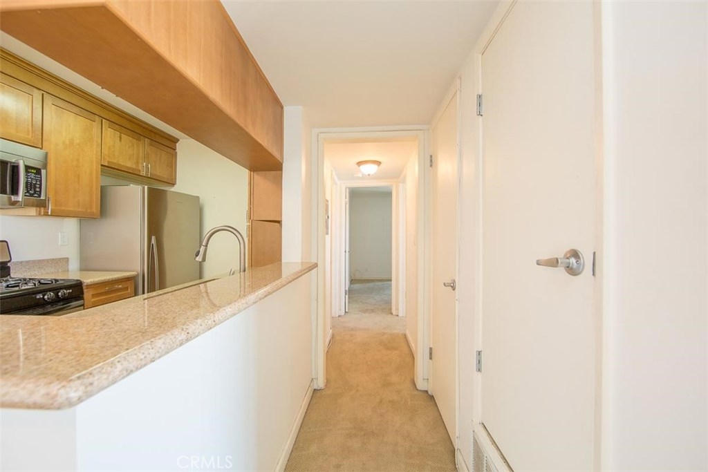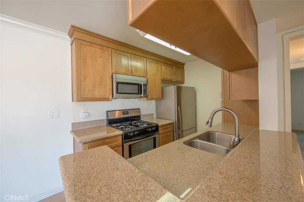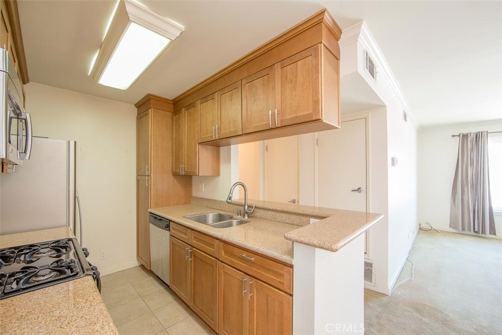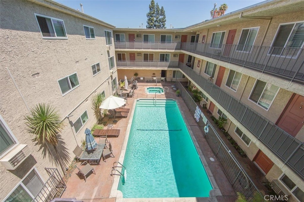 First Time Home-Buyers - This Is It! Ultra clean 2 bedroom, 2 bathroom condo in Winnetka. Desirable third floor, corner location for added privacy, lovely views. Elevator is just steps from the front door. Newer dual-paned windows, crown molding, granite counter-tops in the kitchen all add up to make a fine and comfortable home. Freshly professionally cleaned drapes frame the living room window enhanced with brand new screens. Carpeting has been recently cleaned. The kitchen is updated and spotlessly clean with beautiful stainless steel appliances and tile flooring. Bright hallway leads to the hall bath, hall bedroom and finally the master suite. Enjoy a few moments on the cozy balcony attached to the master suite. Both bedrooms feature mirror glass closet doors for added depth and movement and light. Both bathrooms are clean and updated with attractive storage. A/C is only 7 years old. Super low HOA fee of $216/month. Elevator provides easy access to the third floor. Lobby is secured from the boulevard. In the rear, another security door leads to the parking area. Assigned covered tandem parking. Lot is secured with automatic wrought iron gates. Community laundry area. Beautiful sparkling pool and inviting spa provide the centerpiece of this community.