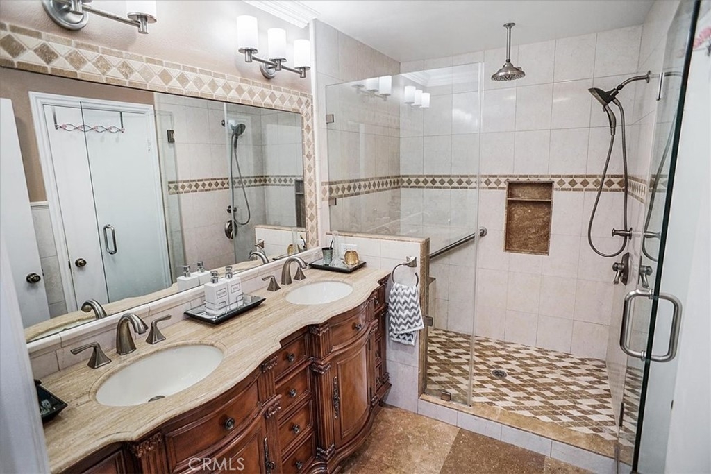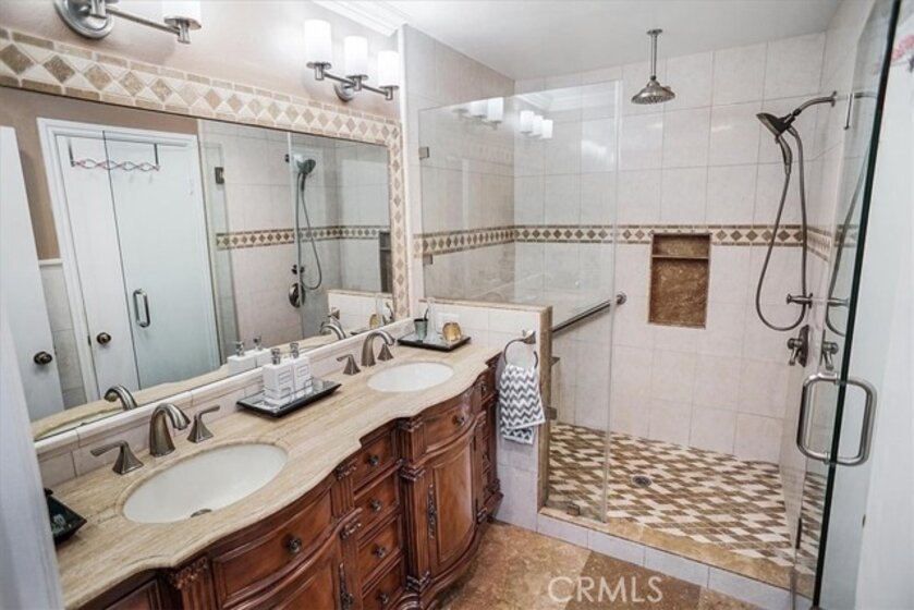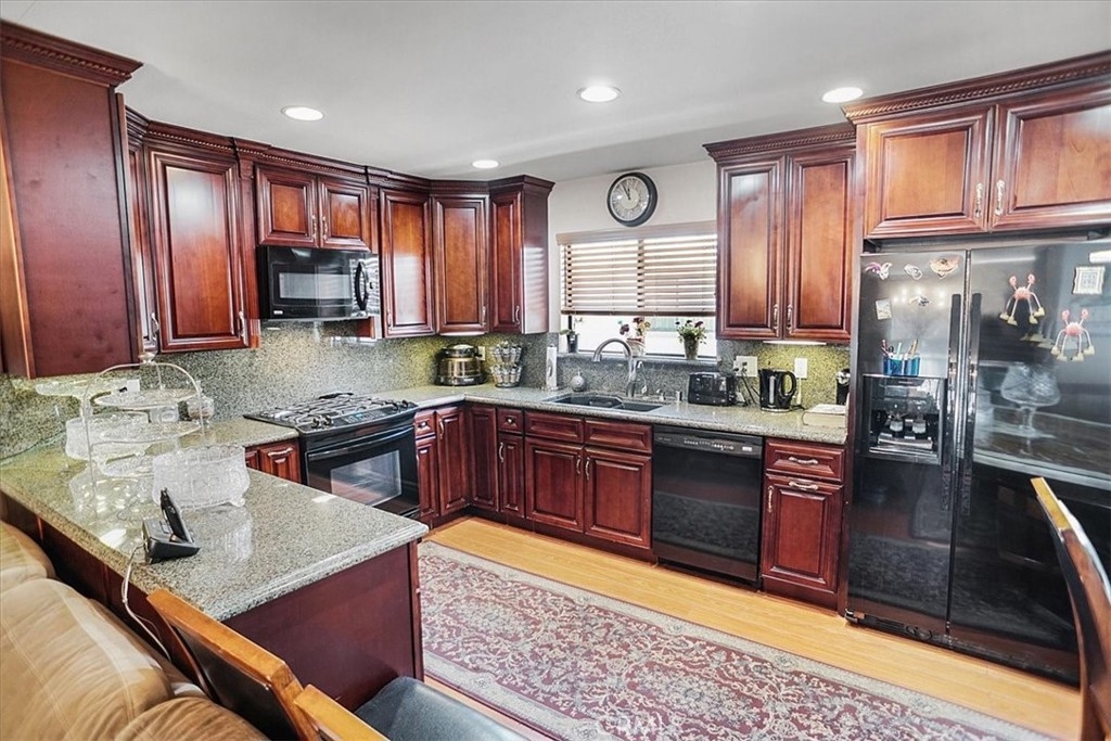 This well-maintained three bedrooms two and a half baths Sherman Court townhouse has many features to offer. Gated entry to the private front patio and split multi-level open concept main area floorplan leads to a cozy dining area and upgraded kitchen with granite counter tops. Living room has vaulted ceilings and fireplace. Down stairs leads to a bonus room which can be used as an optional 4th bedroom. All bedrooms are upstairs. The master bedroom suite has two convenient walk in closets, and a private balcony. There are two additional bedrooms are adjacent to each other and share their own bathroom as well. The property has a direct access to 2-car garage. Great community with tennis court, pool and spa. Here is an opportunity to move right in.