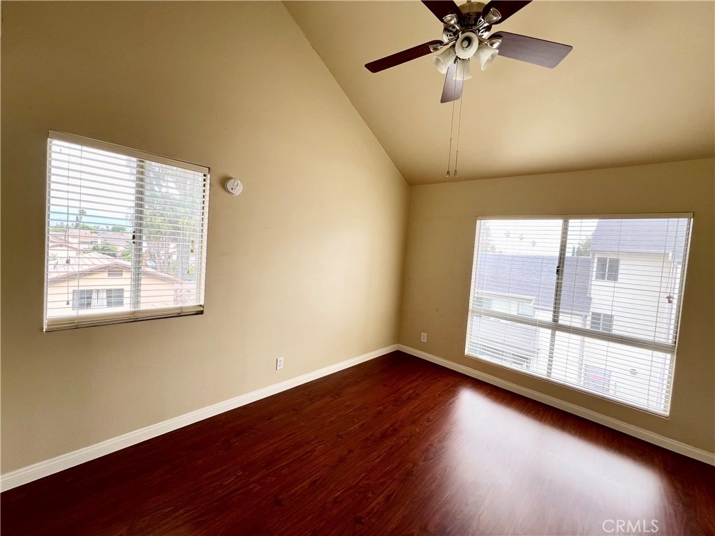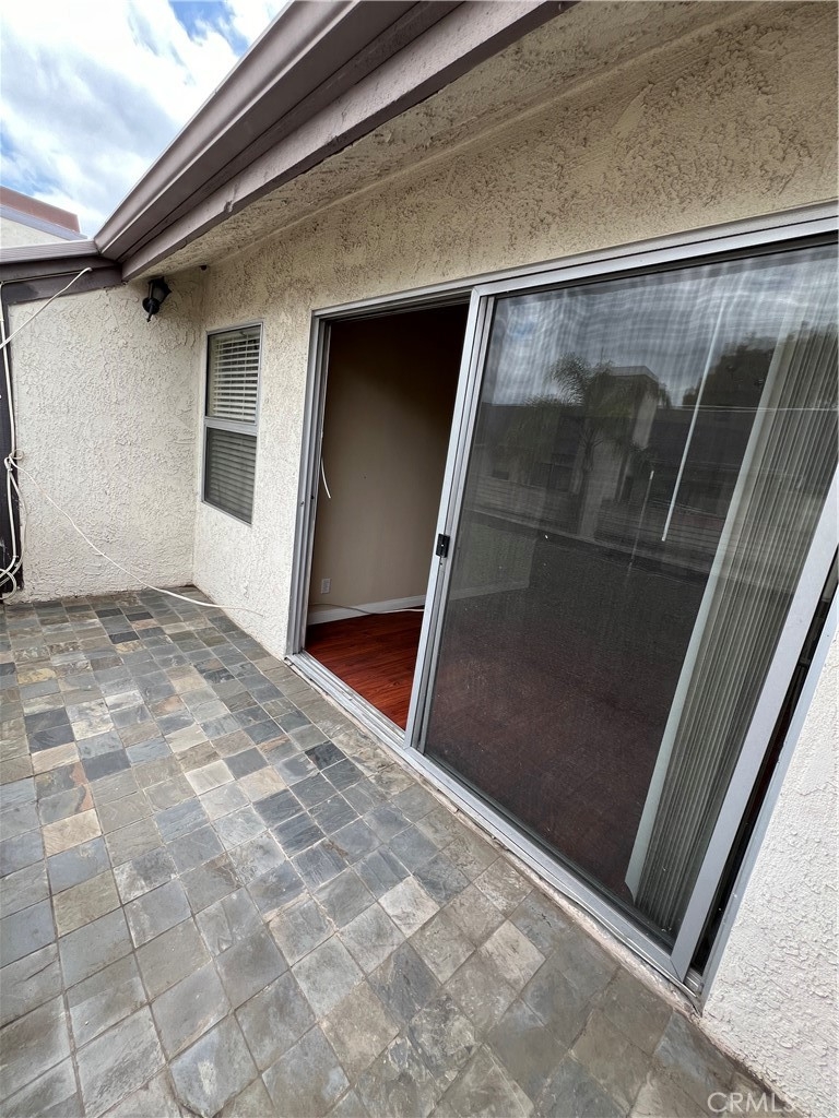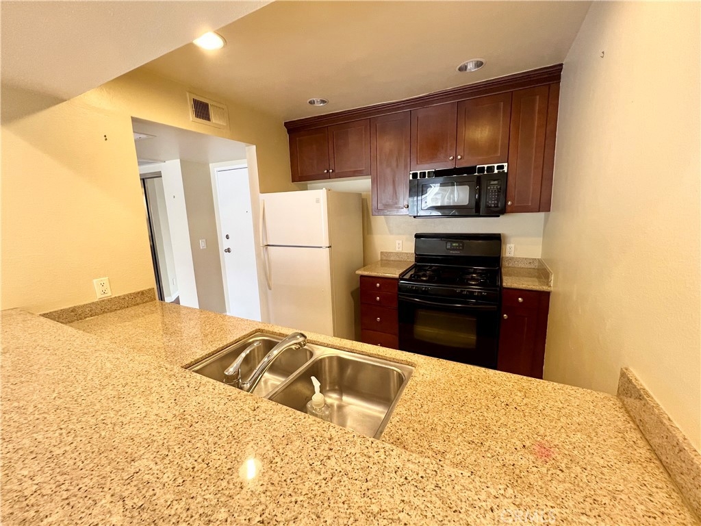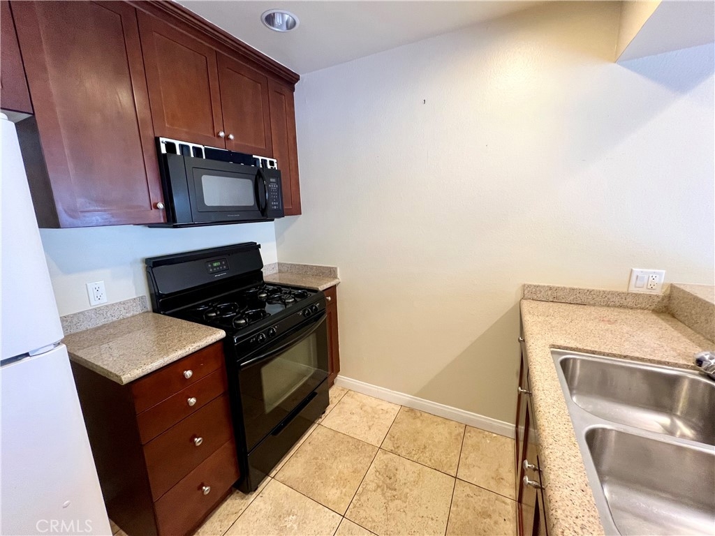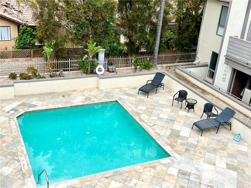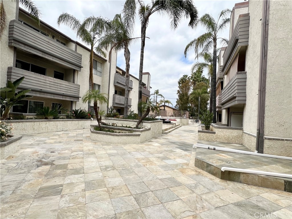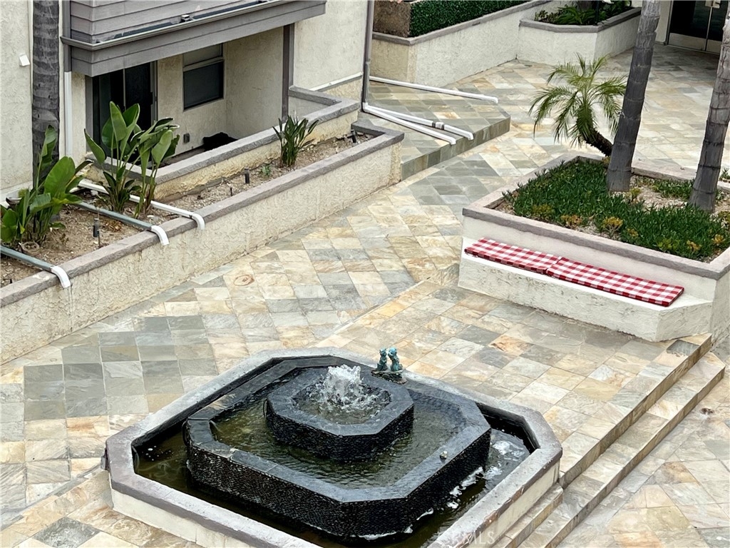 Nestled in a serene residential neighborhood, this exquisite top-floor end-unit condo offers a harmonious blend of comfort and elegance. With two bedrooms, two bathrooms, and vaulted ceilings throughout, this residence epitomizes modern living. Upon entering, you are greeted by the spacious living area adorned with a cozy fireplace, perfect for unwinding after a long day. Adjacent to the living room lies a charming dining area, ideal for intimate gatherings or casual meals. The open kitchen boasts granite countertops, sleek cabinetry, and a gas stove, providing both functionality and style. Equipped with a refrigerator and complemented by ample storage space, the kitchen is a chef's delight. The primary bedroom suite is a sanctuary of relaxation, featuring two closets for ample storage and an attached bathroom for added convenience. Meanwhile, the secondary bedroom offers a walk-in closet, providing plenty of room for personal belongings. A sliding glass door leads from the living room to a private balcony, where you can enjoy morning coffee or evening sunsets while overlooking the tranquil courtyard and the soothing sounds of a fountain below. Residents of this exclusive complex can indulge in the luxury of a pool and spa, perfect for rejuvenation and recreation. Controlled access entry and dedicated parking ensure security and convenience, while the inclusion of earthquake insurance offers peace of mind. With the added convenience of a washer and dryer inside the unit, this condo effortlessly combines practicality with sophistication, offering a lifestyle of comfort and convenience in a highly desirable location.