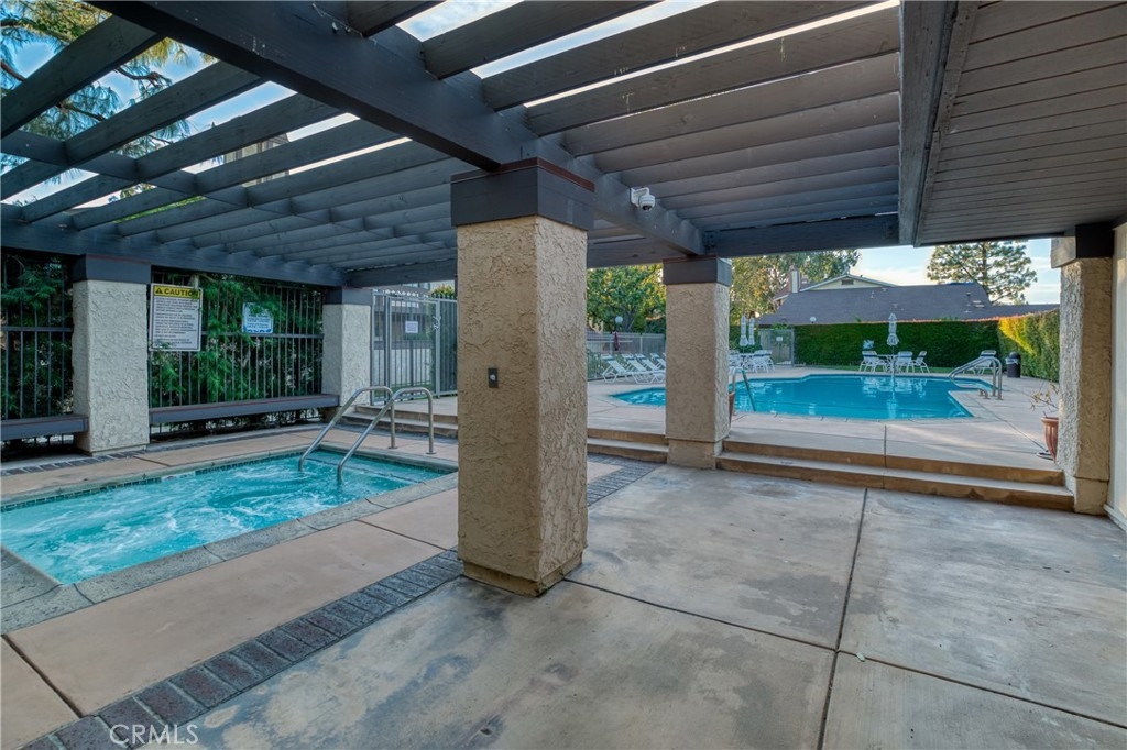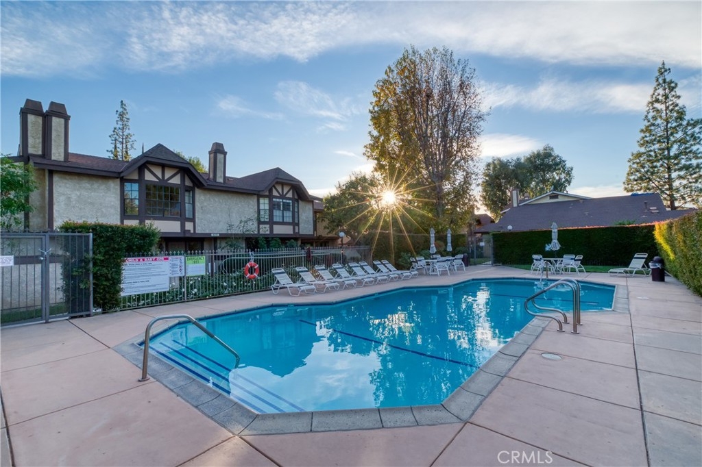 Beautiful condo located in a very desirable area of the San Fernando Valley. This end unit is conveniently located close to the pool/spa area and is surrounded by lush green landscaping. The first floor features include: large living room with gas fireplace, ceiling fan, updated sliding glass door that open to the private patio. You will also find a updated guest bathroom with granite counters and marble floors. The Dining area is conveniently located off the living room. The kitchen has stainless steel appliances and an updated sliding glass door that open to a 2nd private patio. The stairs have Oak wood that lead to the 2nd floor which features a large landing with a vaulted ceiling and a ceiling fan. The spacious main bedroom features a sitting area, 2 mirrored closets, private bathroom with tub/shower, a ceiling fan and vaulted ceiling. There are also has 2 secondary bedrooms upstairs, one currently being used as an office with ceiling fans and your 3rd bathroom. Interior has been freshly painted, has laminate wood floors throughout, Updated Dual pane windows and newer central heating & air conditioning system. The 2-car attached garage with roll up garage door and auto opener and has washer dryer hook-ups. Easily access the garage through the kitchen. The condo community is located close to a park, shopping, schools, entertainment, and minutes to freeway access.