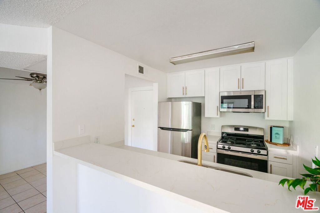 Incredible opportunity to kiss your landlord goodbye and own in LA for under $300,000! This newly renovated 1 bed, 1 bath 2nd floor condo with IN-UNIT LAUNDRY HOOKUPS!, tons of storage & own private patio offers unbeatable value, perfect for first time buyers or savvy investors. Step inside to your fully renovated kitchen with new fixtures, cabinets, appliances, & quartz countertops lining your breakfast bar off the living room. The open concept layout flows nicely, featuring connected dining, living room with a cozy fireplace, and sliding glass doors leading to your balcony with storage closet for added convenience. The generously sized bedroom features a walk in closet, while an additional entryway closet provides even more storage space. The full bathroom is well sized as well with even more linen storage. Enjoy the desireable amenities such as elevator access, central heating and air, and say goodbye to the laundromat with your own in-unit laundry hookups! This unit also includes shared guest parking and your own two tandem parking spaces in a gate-secured subterranean garage, a rare and amazing find at this price point. This home is nestled in a wonderful neighborhood, just minutes from local coffee hot spots: RE: Coffee, Yonder, and Jesse's Grind, as well as all the shopping, dining, and movie theaters at the Vineyards at Porter Ranch, Westfield Topanga, The Village as well as not 1 but 2 Costcos! Do not miss one of the best values in LA, welcome home!