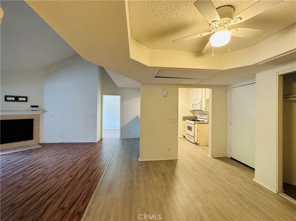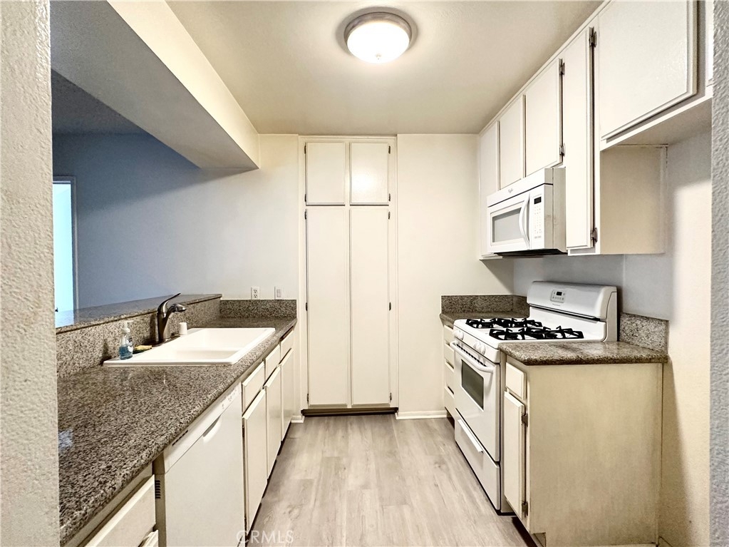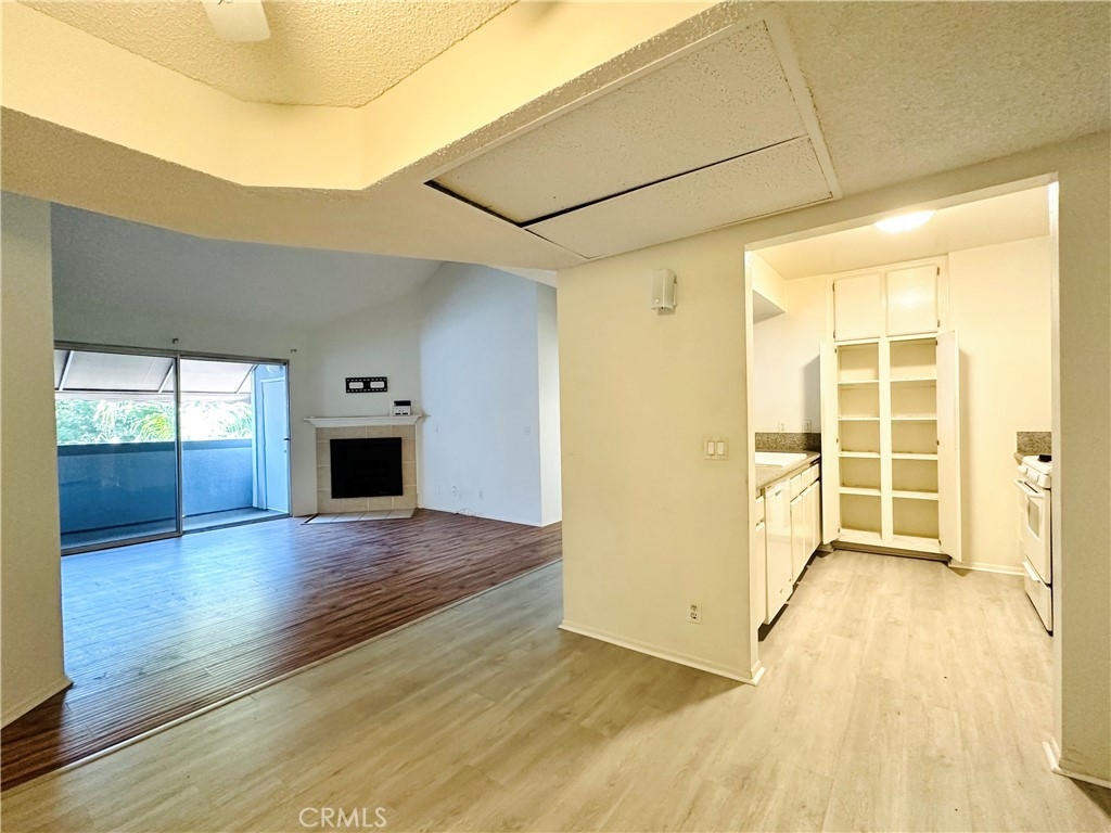Beautiful top level 2 Bedroom 2 Bath unit located in well maintained building, as you walk into the unit you will find an open kitchen and dining area, a cozy fireplace sits in the spacious family room with a sliding glass door leading you to the private balcony, there is a storage closet in the balcony. Two bedrooms on opposing ends of the unit for maximum privacy. The primary bedroom has its own bathroom with enclosed shower. Convenient in-unit laundry hookup as well as additional community laundry facility. The community has beautiful landscaping with a community pool, spa. The gated entry to a furnished lobby reception has an elevator to take you to the top floor and down to the garage. There are 2 assigned parking spaces in the gated subterranean parking, and ample guest parking outside. Must See!