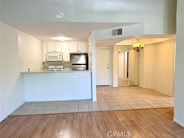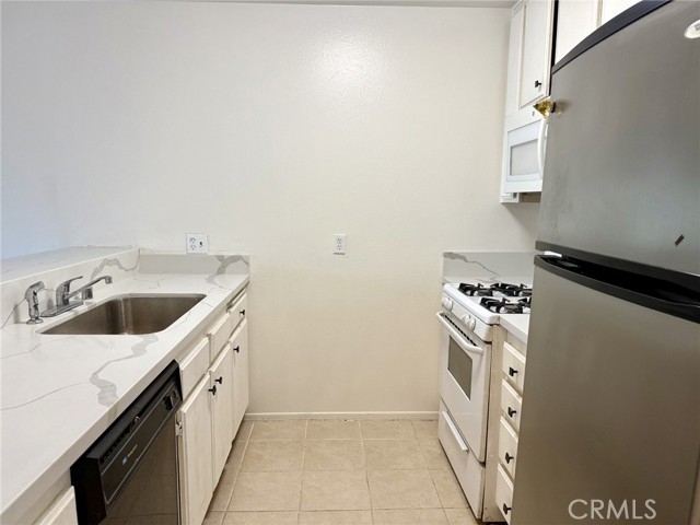 This incredible 1+1 freshly painted penthouse unit with vaulted ceiling is very bright with views of the trees and close proximity to area shops and restaurants. Great complex with a lot of trees and greenery. Spacious living room with fireplace and large balcony with storage. Open kitchen with brand new Quartz counter tops and breakfast counter. Dining area. Primary bedroom with vaulted ceiling and walk-in closet. Washer and dryer hook-ups in the closet. Full hallway bathroom. Other features include wood and tile floors, plenty of closet space. Small complex with pool and spa. Gated garage with 2 car parking. Plenty of guest parking. Prime location.