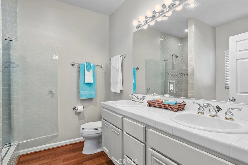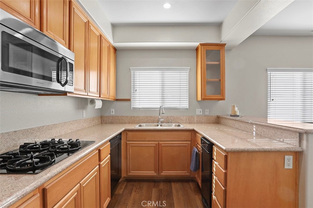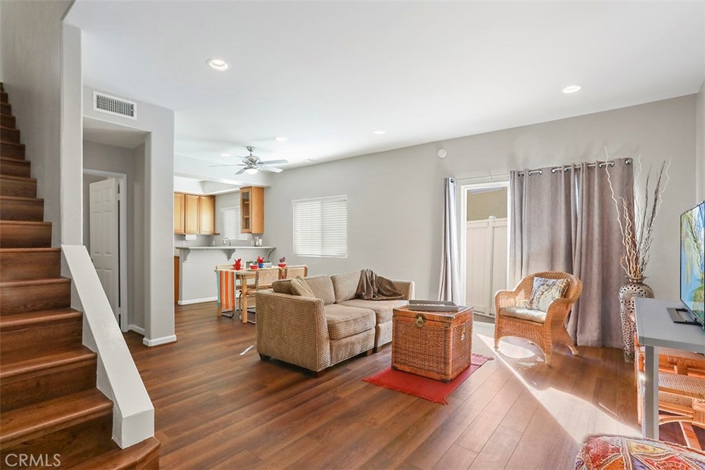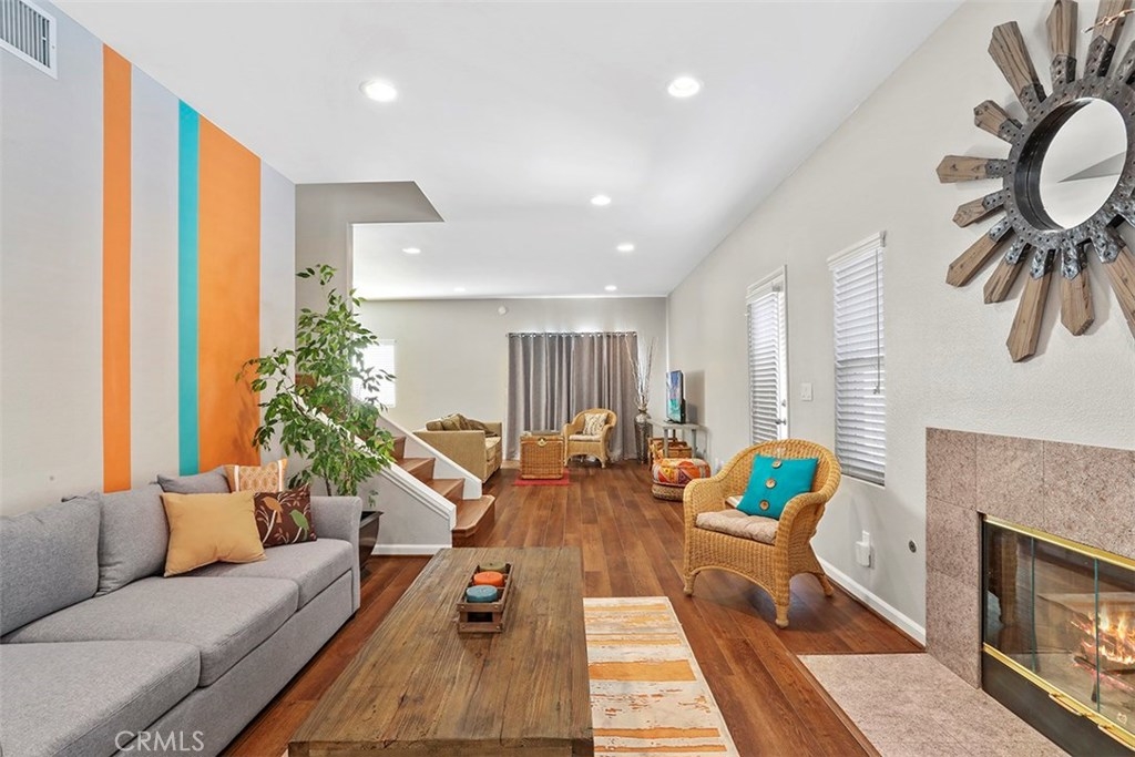 Best unit in the complex. Completely detached end unit with adjacent green space. Two private outdoor areas feature custom tile work, artificial grass, and drought-resistant landscaping with drip system. Kitchen features granite counters and opens to dining and living room. Light & bright home with new paint and new Smartcore Ultra flooring in Lexington Oak. Desirable floorplan features family room with cozy fireplace, upstairs laundry room, all bedrooms upstairs, and attached 2-car garage with direct access. Huge master suite with walk-in closet. Ensuite master bathroom features dual sinks, separate shower, jetted tub, and upgraded tile work. Features include: recessed lights, ceiling fans, pex plumbing, double pane windows throughout. Coveted community with gated access, pool, spa, tot lot, and several green spaces. Amazing location close to Orange Line, Pierce College, and Westfield Village. Refrigerator, washer & dryer included in sale.