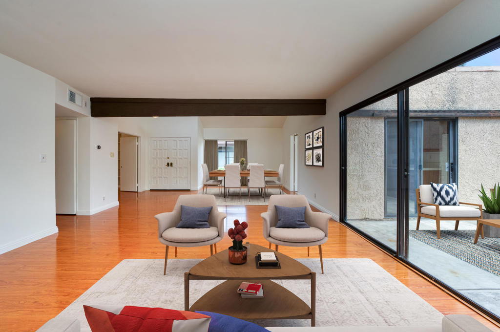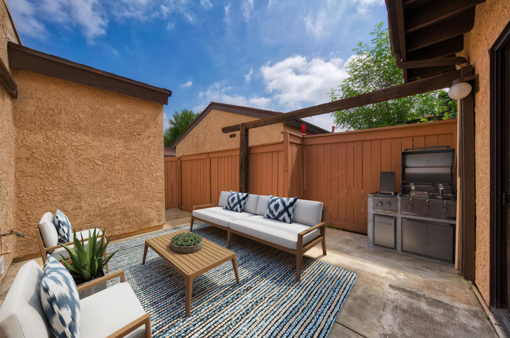 Located in the serene 'Woodlands' in Winnetka is this hard-to-find, lovingly maintained, SINGLE STORY townhome with only one shared wall and attached 2 car garage! As you step in through the grand double door entrance you are greeted with over 1,400 sqft of freshly painted luxurious living space, a naturally bright and open floor plan complete with fireplace and high vaulted ceilings. The large kitchen with view of the private enclosed patio is awaiting your finishing touches. The sun-filled en-suite primary bedroom with large walk-in closet, generously sized second bedroom and huge office/bonus room (that could be used as a third bedroom) all have wood-like flooring, high ceilings and have been recently painted. If that wasn't enough, this Community offers lush landscaping, 2 pools, 2 spas and 2 night-lit tennis courts and is centrally located just steps from the Winnetka Recreation Center, shops and restaurants.