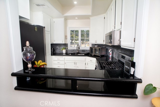 Rare FHA & VA approved community! One of the few units with no shared walls, offering privacy and the feel of a single-family home. Inside, discover soaring ceilings, wood floors, and a cozy fireplace filled with natural light. The remodeled kitchen shines with quartz counters, stainless appliances, and a sleek backsplash. The super-sized primary suite is a true retreat, complete with vaulted ceilings, space for a sitting area, and a large walk-in closet. Stylishly upgraded bathrooms, a private patio perfect for entertaining, attached 2-car garage, and access to a sparkling community pool complete this exceptional home. Move-in ready and truly one of a kind!