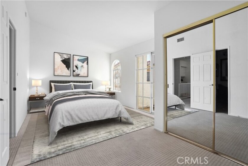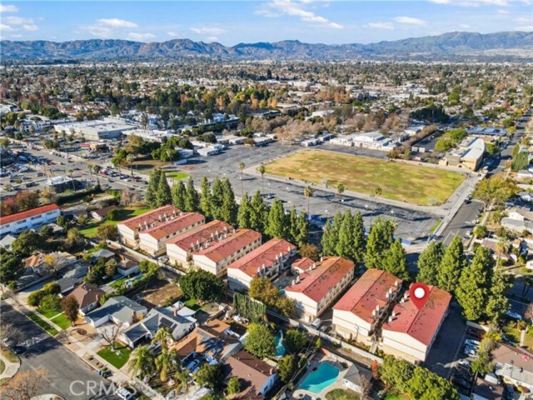 Ready for a fresh start? This one will check all the boxes. This 3-bedroom, 4-bath townhome is so spacious and move in ready! Enter through the courtyard and be greeted by a generous living room featuring high ceilings, a fireplace and laminate flooring. New interior paint throughout plus brand-new carpeting. An abundance of natural light fills each and every room. The dining room is perched right above the living room, a perfect space to entertain and enjoy your company. From there, you will be close by the kitchen, a chef's dream! With an abundance of counter space and cabinets, your kitchen has plenty of room to prepare your favorite meals! Head up to the top floor and you will find two en suite bedrooms. The primary room features a large walk in closet plus balcony. On the bottom floor, you will find another bedroom that is perfect for either a guest room or a home office plus another bathroom with a shower. Laundry room is indoors and your 2 car garage is connected to the unit. The community features a swimming pool, spa and recreation room. Convenient valley location, close to shopping centers, schools, Pierce college, 101 freeway and Orange Line Transportation. This one has it all and is just now waiting for you!