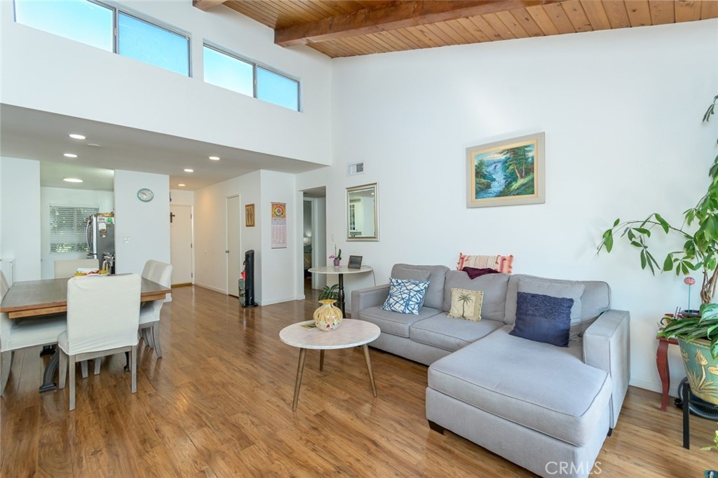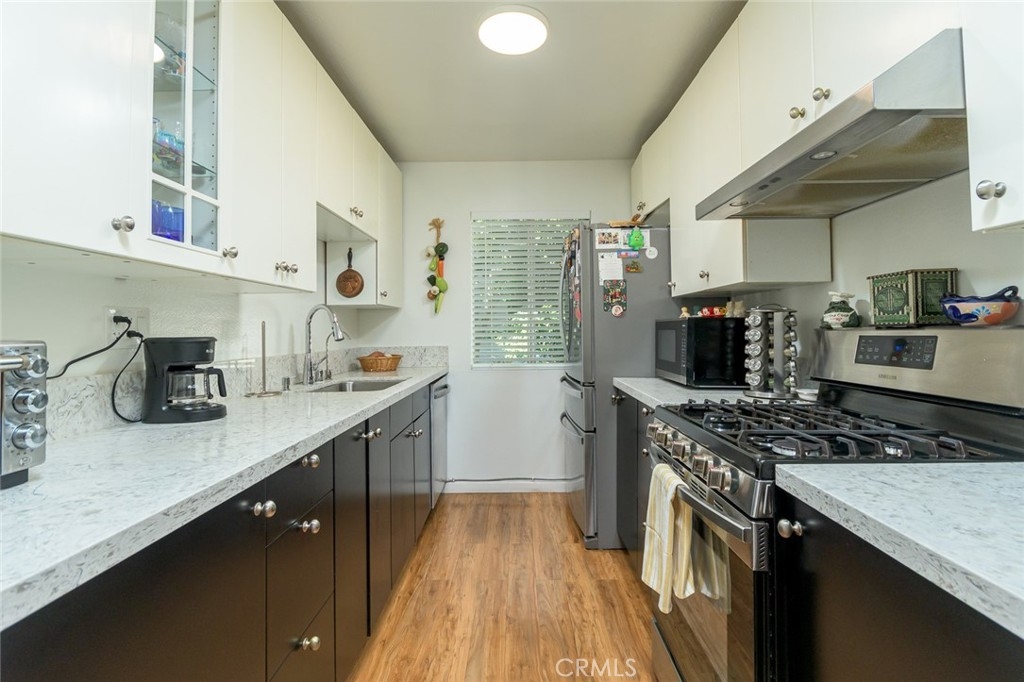 Top-floor living in the heart of Winnetka! This light-filled 2 bedroom, 2 full bath condo features an open-concept floor plan with a beautifully remodeled kitchen that flows seamlessly into the spacious living area—perfect for both relaxing and entertaining. This home has had some very nice upgrades to include quartz countertops in the kitchen, nicely appointed bathrooms, and warm colored and cool feeling wood laminate flooring. The primary bedroom offers a private retreat with an en-suite bathroom, while the second bedroom and full bath provide flexibility for guests, family, or a home office. Surrounded by the large canopies of the shaded mature trees, the home feels peaceful and tucked away. Step through the living area outside to your own private balcony patio—ideal or morning coffee or unwinding at the end of the day. Enjoy resort-style amenities in this well- maintained, gated community, including 24-hour security, a sparkling pool, multiple spas, a large clubhouse for your parties, on-site laundry facilities, and lushly landscaped grounds. The unit includes two tandem parking spaces in a covered, secured structure. Ideally located near shopping, dining, and Runnymede Park, this home offers both comfort and convenience in a desirable setting. Come take a look and stay for good!