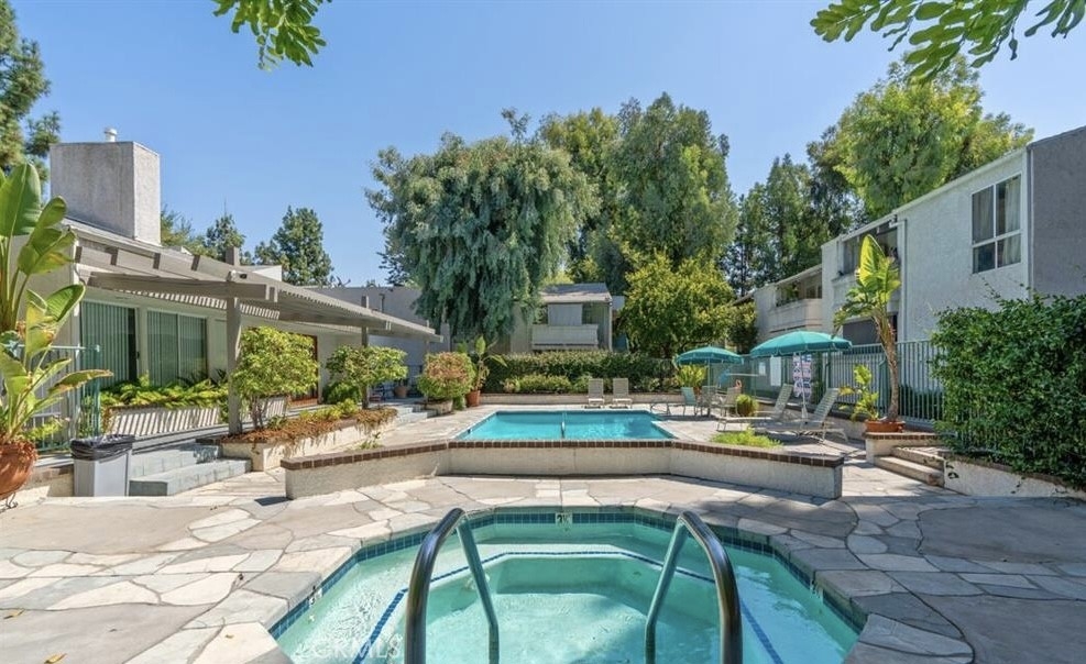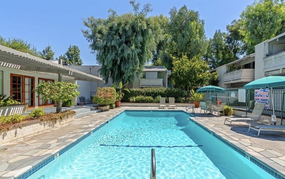 Don’t miss this rare opportunity to own a premier ground-floor, 2-bedroom, 2-bathroom residence featuring a one-of-a-kind private patio shaded by a mature citrus tree and equipped with a large storage closet. Located in the secure, gated Westside Condominium Community, this bright and well-maintained unit offers a spacious living area with large dual sliders that open to your secluded outdoor oasis, while both bedrooms provide peaceful views of the surrounding greenery. Residents enjoy th great amenities including 24-hour security, a clubhouse, multiple spas, a sparkling pool, and lushly landscaped walkways, all just steps away from the tennis courts and playgrounds of Runnymede Park. Perfectly situated near Pierce College, shopping, and dining, this home offers ultimate peace of mind with HOA dues that conveniently include gas, water, trash, sewer, insurance, and common ground maintenance.
