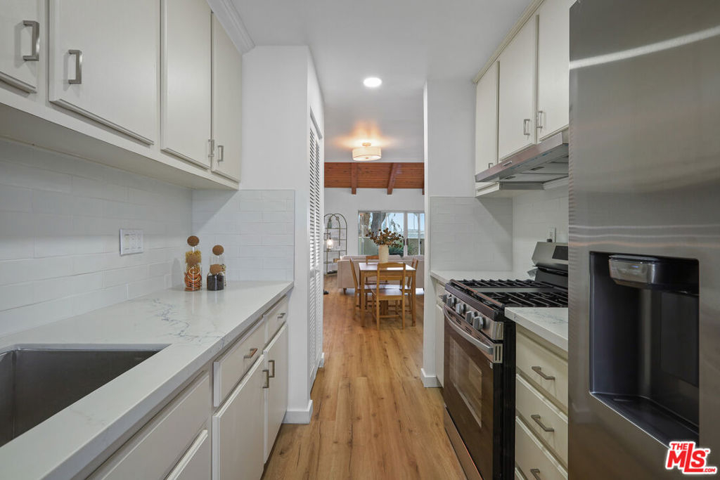 Discover this beautifully remodeled home in the gated Westside Community of Winnetka, where luxury meets convenience and modern amenities blend seamlessly with sophisticated design. The interior boasts new flooring and fully renovated bathrooms with sleek shower doors. At the heart of the home, the bright and modern kitchen features stainless steel appliances, chic cabinetry, and a stylish tile backsplash. The kitchen's open layout flows into the dining and living areas, making it perfect for entertaining and everyday living. The primary bedroom offers recessed lighting and ample closet space, while the second bedroom is bathed in natural light from expansive windows. The convenience of in-unit laundry adds to the home's appeal, along with additional features like a spacious balcony and high ceilings that enhance the sense of space. This unit includes two tandem parking spots, providing ample parking for residents and guests. An elevator in the building ensures easy access to this top-floor retreat. Outside, enjoy the resort-like community amenities, including a lush landscape, a pool, two spas, and a clubhouse. Located across from Runnymede Park and close to Pierce College, shopping, dining, and the 101 FWY, this turn-key home is an exceptional find for those seeking a blend of comfort and convenience.