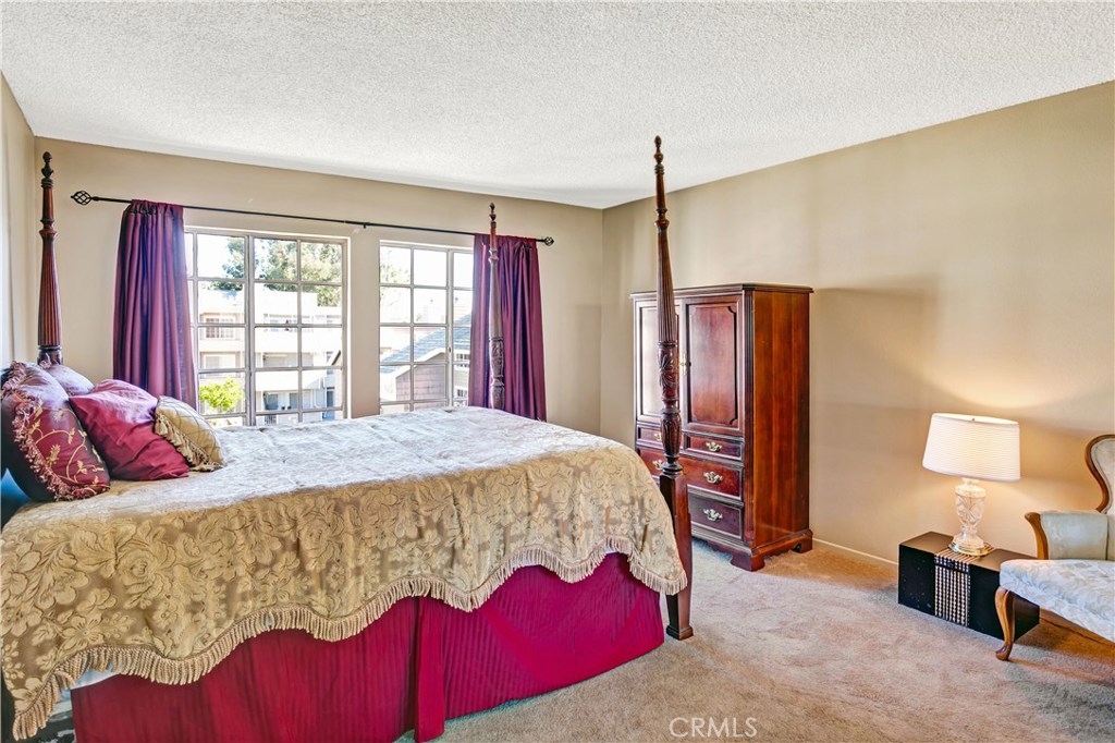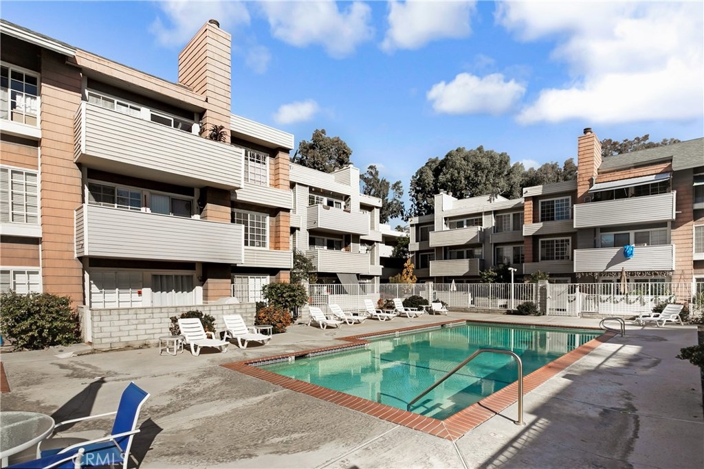 Spacious 1-story with 2 bedroom, 2 bath condominium in the highly desired Keswick Villas. This exceptional home features over 1,000 square feet filled with natural light and an open floor plan. Living room boasts soaring high ceilings, cozy brick fireplace and sliding glass door to the private balcony overlooking the pool, perfect for entertaining. Immaculate kitchen with tons of cabinet and counter space and a breakfast bar. Large en-suite master bedroom with his and her closets. Second bedroom includes large closet and view of pool. Both bedrooms are on opposite sides of the unit giving added privacy to each room. Separate laundry room inside the unit with built-in shelving. Features of the complex are secure underground parking, fully gated and access controlled, sparkling pool and spa. Close to shopping and dining.