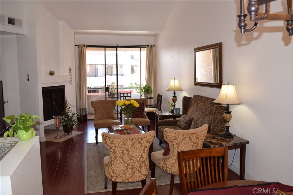 JUST REDUCED!!! WHY RENT!! Rare opportunity in a wonderful inside location unit located at the Park Avenue Gated Secured Condo complex. Top Floor 850 SQFT 1BD/1BA unit with beautiful newer flooring, 2017 installed central air and heat system, electric stove, newer light fixtures, living room with cozy fireplace open to the kitchen with high ceilings. The sliding glass door leads you to a very private balcony, yet close to the big open pool area with spa and lounge furniture to enjoy the hot summer days. Large bedroom with walk-in closet, remodeled bathroom with tub and shower and newer light fixtures. This complex has a pool, spa, fitness room, community laundry room, large recreational room for meetings and celebrations. The unit has 2 tandem parking spots (Spot# 117) and room for additional storage area.