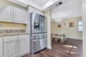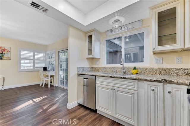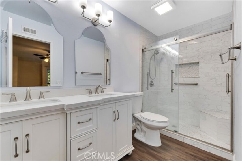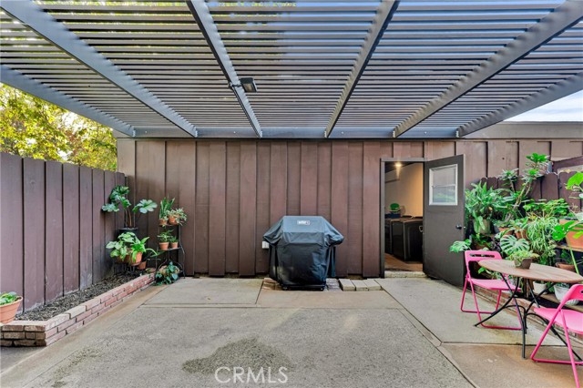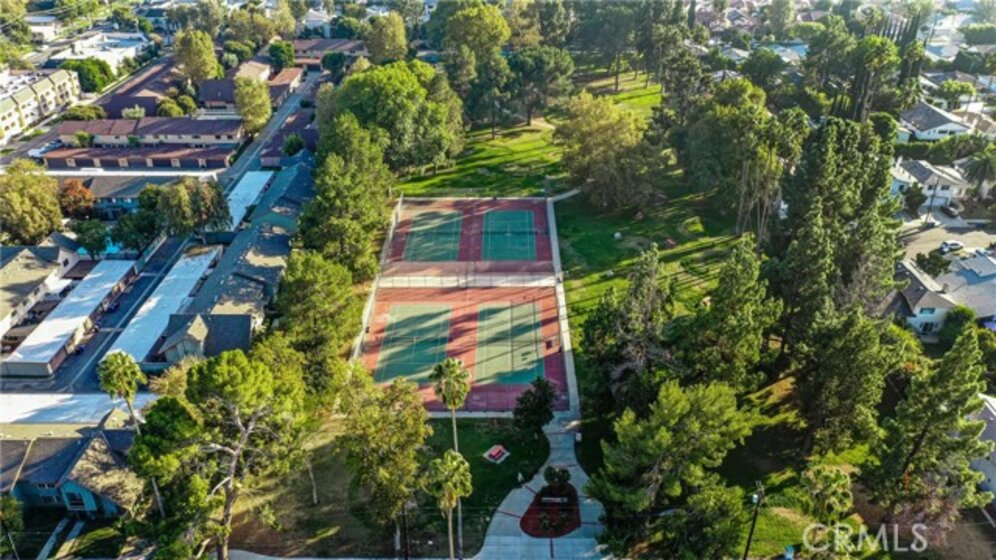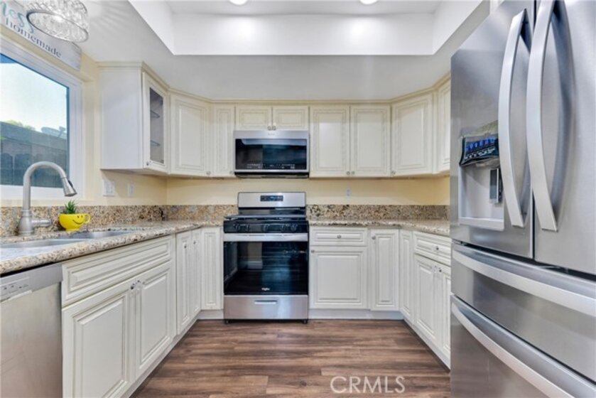 This beautifully maintained 2 bed, 2 ½ bath, nearly 1600 sq ft end-unit townhome blends space, comfort, and timeless appeal within a secure gated community, part of the sought after Franciscan complex at the center of Winnetka. Filled with natural light and pride of ownership, the home features a bright, open floor plan with smooth ceilings, plantation shutters, dual pane windows, and durable, luxury vinyl flooring throughout. The inviting living room opens to a large dining area, versatile enough to serve as an informal living space with sliding glass door out to the back patio. The remodeled kitchen forms the heart of the home, perfect for entertaining or enjoying preparing meals, offering granite counters, light cabinetry with stylish glass fronts, stainless steel appliances, and recessed lighting set in a tray ceiling. An updated ½ bath on the first level is convenient for guests. Up the stairs, brightened by a large skylight, are two en-suite bedrooms. The spacious primary suite features dual closets, a ceiling fan, and a sliding glass door to a private balcony, with a beautifully redone bath offering a dual sink vanity and a large walk-in shower with tile enclosure and built-in seat. The secondary suite includes plantation shutters, dual closets, and its own remodeled ¾ bath with dual sinks. Additional features include an updated electrical panel, and newer HVAC system ensure modern comfort and reliability. Out back is a private covered patio bordered by brick planters and a wood fence, perfect for relaxing or entertaining. Beyond is the detached two-car garage with laundry hookups and access from the private drive behind. Part of the Franciscan III community, the home has access to the community grounds, pool, and spa. Move-in ready yet offering the opportunity to personalize over time, this bright and well-cared-for home captures the best of comfort and practicality in a desirable Winnetka location near shopping, parks, and major commuter routes. Don’t miss out on this one!