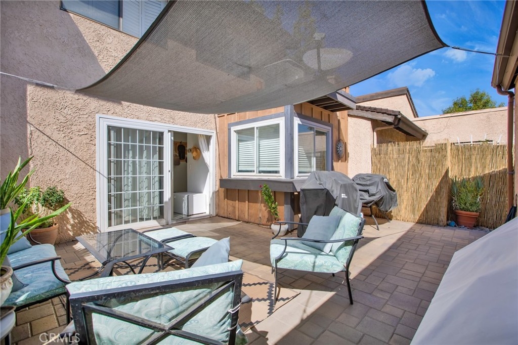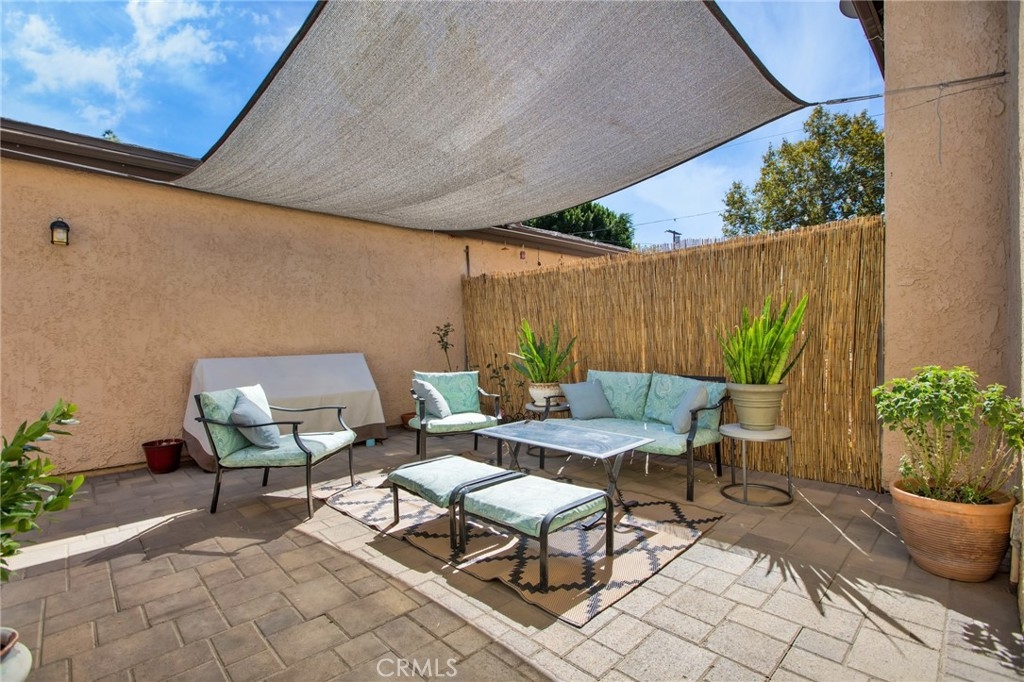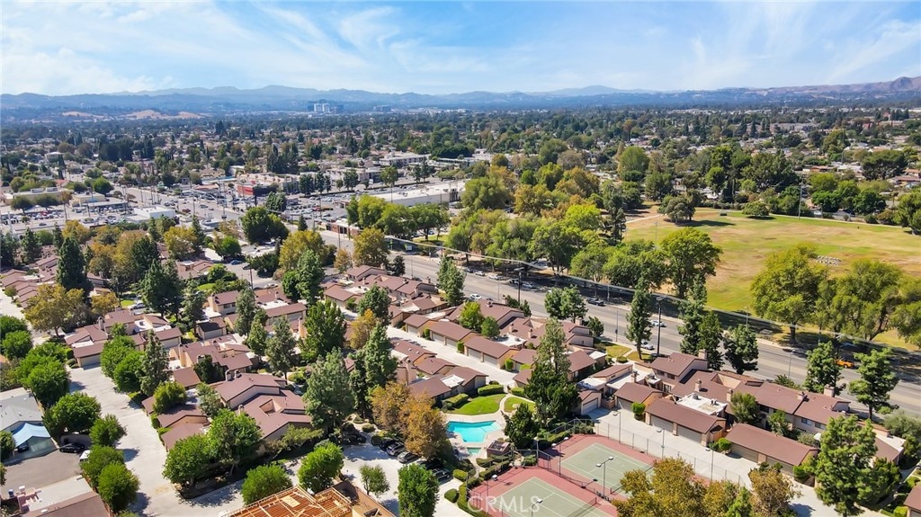 Located in the desirable Canoga Woodlands Community. This Beautiful townhome has a double door entry into an open concept living and dining area. The kitchen has stainless appliances, an extra pantry/staging area and there is a huge breakfast/dining area/ multipurpose room that opens to the rear patio and 2 car detached garage. The patio has a sailcloth shade and is private and great for entertaining. All three bedrooms are located upstairs. The primary bedroom has a private balcony and soundproof windows and slider (recording studio quality). Laminate wood floors downstairs and upstairs. Close to CWC West Valley Charter School